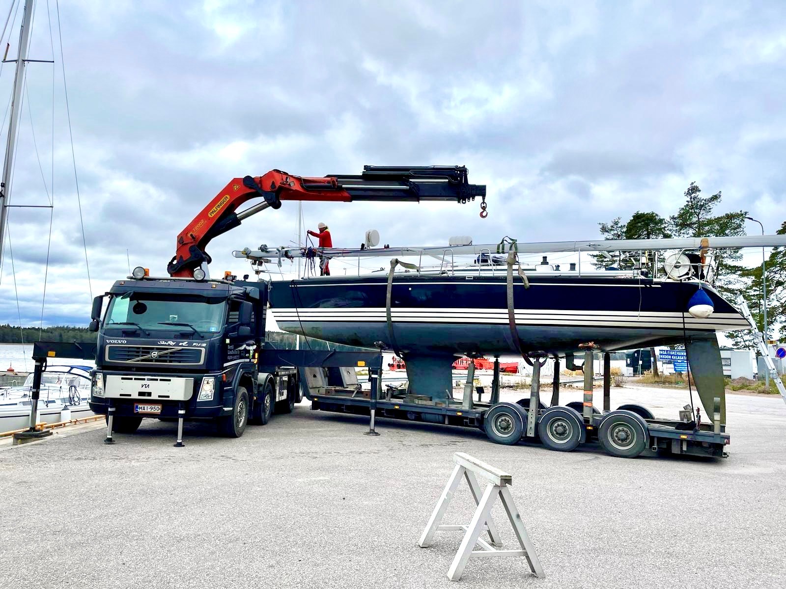 PM Crane 35 tonnimetrin nosturi on varustettu viidellä hydrauli ja kahdella kylmällä jatkolla. Nostokyky auton vierestä n. 5000kg ja ulottovuus 18,35m. Katso nostotaulukko
